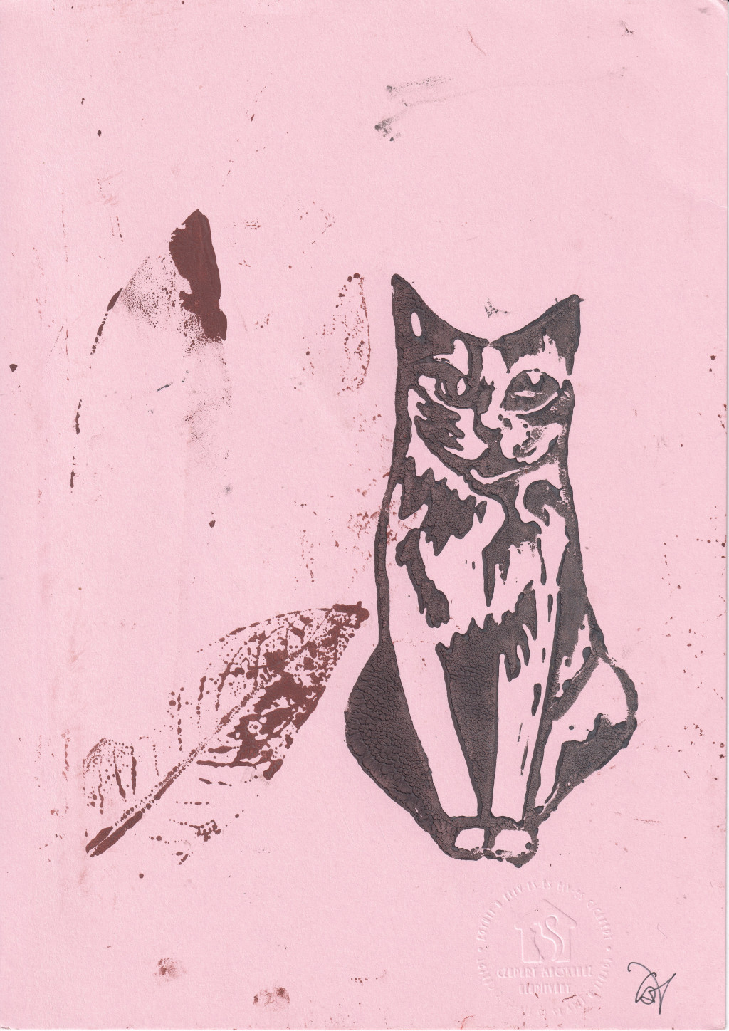 A Tamás, a macska 34 című monotípia, linómetszés a Nyomok a múltból, Final Show sorozat része, amelyet a macskasziluettek, mint rituális álarcok, maszkok jelképei ihlettek. A rituális álarcok és maszkok az átalakulás szimbolikus jelentésének hordozói, Veronika erre a problémára összpontosított a sorozattal. Fontos volt, hogy megtaláljon bizonyos örök formákat, amelyek nem sablonosak és közhelyesek de mégis kifejezik a macska lényegét. A monotípia, linómetszés két technika ötvözése, mely lehetővé teszi, hogy konzerválni tudja azt a lebegő, megfoghatatlan érzést, amelyet egy macska közvetít – a kép éles, de mégsem merev, dinamikus, és egy pillanat rögzítéseként figyelhető meg.