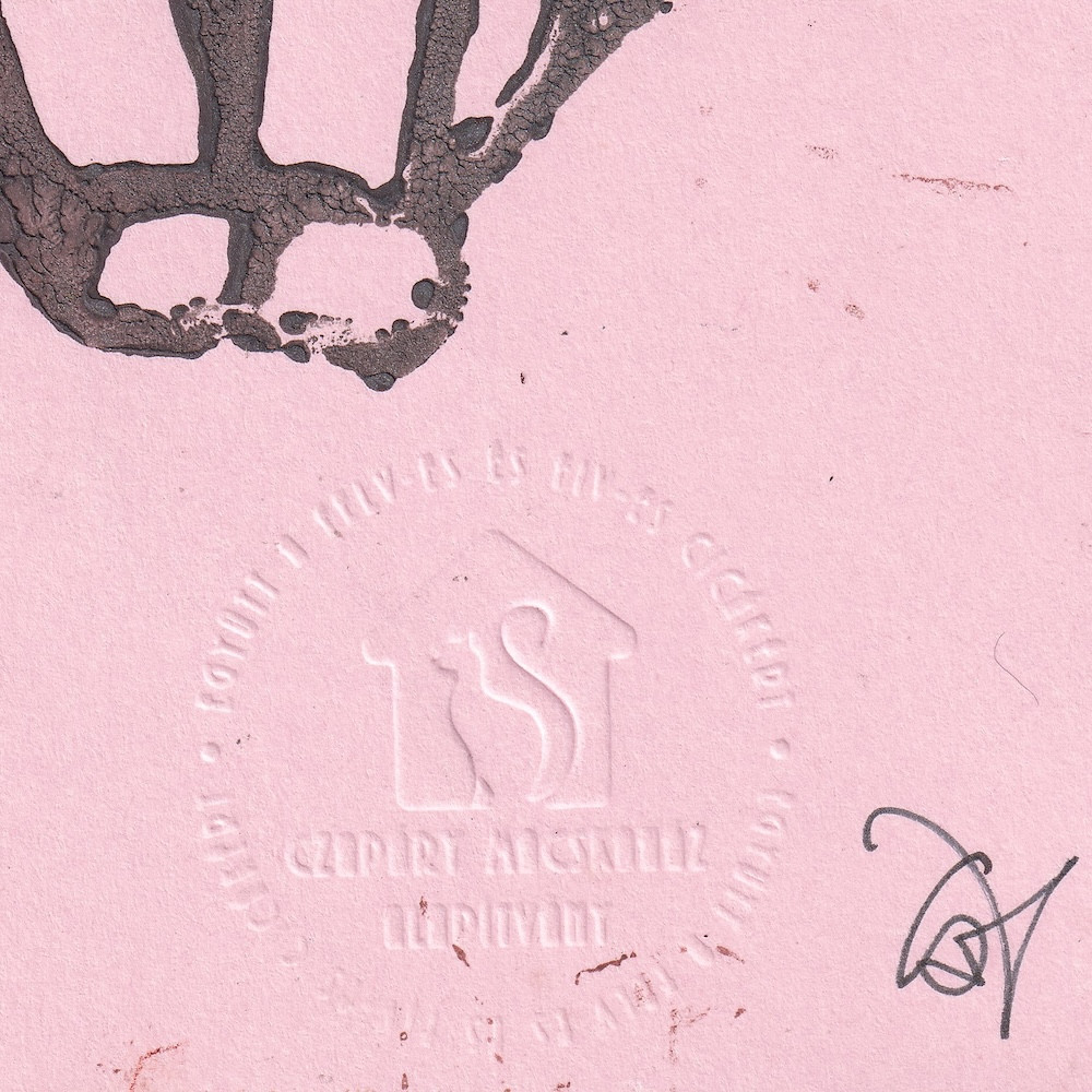 Szignózott, egy darabos művészeti alkotás eredetiségigazolással.